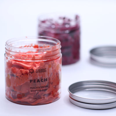 Zacht, luchtig en onweerstaanbaar fruitig. De Peach Whipped Body Soap heeft een romige, opgeklopte textuur die moeiteloos over de huid glijdt en verandert in een rijk, verzorgend schuim.