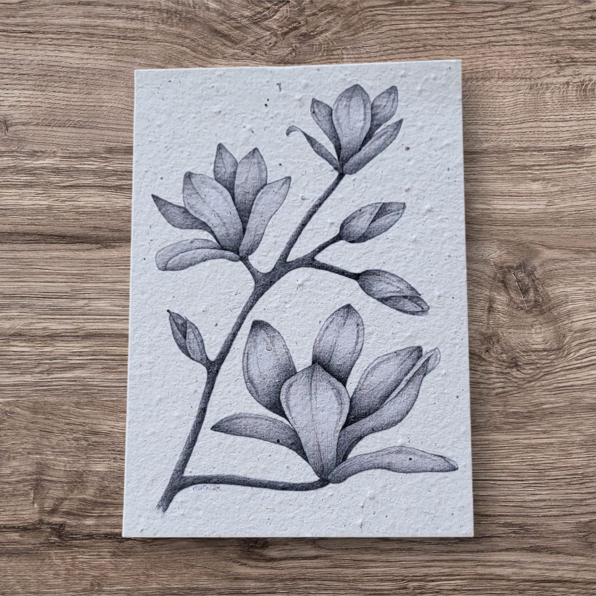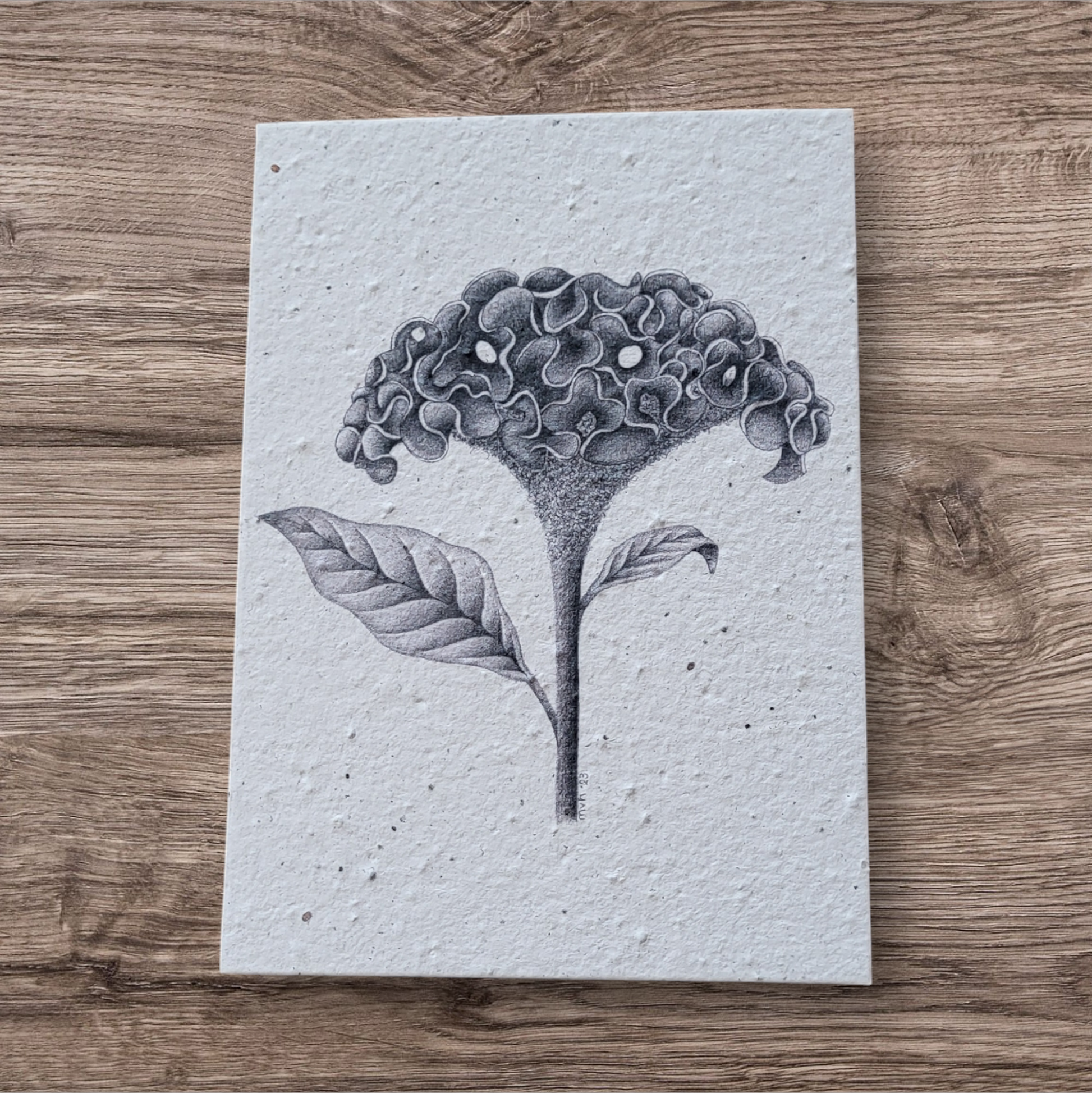 Unieke bloeikaarten met handgetekende illustraties, gemaakt van gerecycled papier met bloemzaadjes erin. Schrijf, verstuur, plant en laat kunst tot leven komen in de vorm van bloemen!