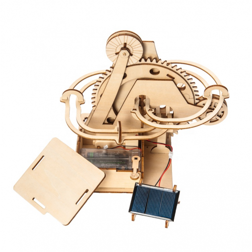 Bouw je eigen knikkerbaan op zonne-energie en elektriciteit(batterij). Laat de zonneschijn op het zonnepaneel vallen en de knikkers gaan rollen.