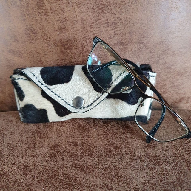 De brillenkoker is handgemaakt en aan de binnenkant gevoerd met lamsleer.