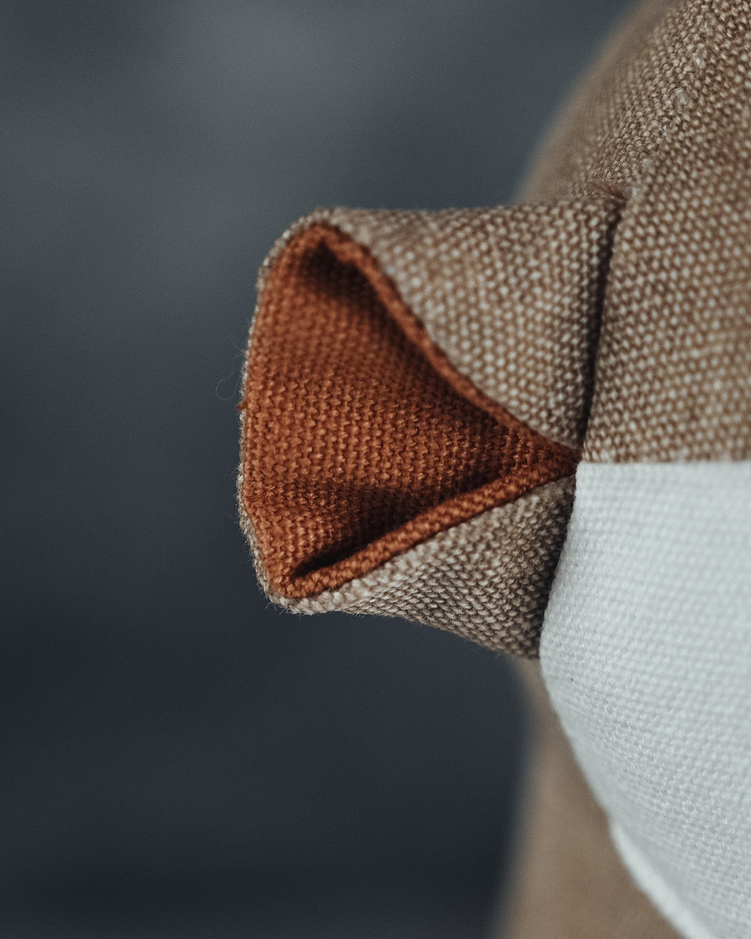 Eddie’s heldere, ondeugende blik betovert jong en oud. Zijn grappige, kleine knoopogen en vrolijke gezicht toveren een lach op ieder gezicht. Het lichaam is gemaakt van hoogwaardig, glad stof in aardse tinten, terwijl de beige lampenkap een zacht, warm licht verspreidt dat perfect aansluit bij de kleur van zijn lichaam. Zijn rechte, typische stokstaart-houding laat zien dat hij altijd alert is en zijn omgeving verkent – een charmante combinatie van speelsheid en elegantie.