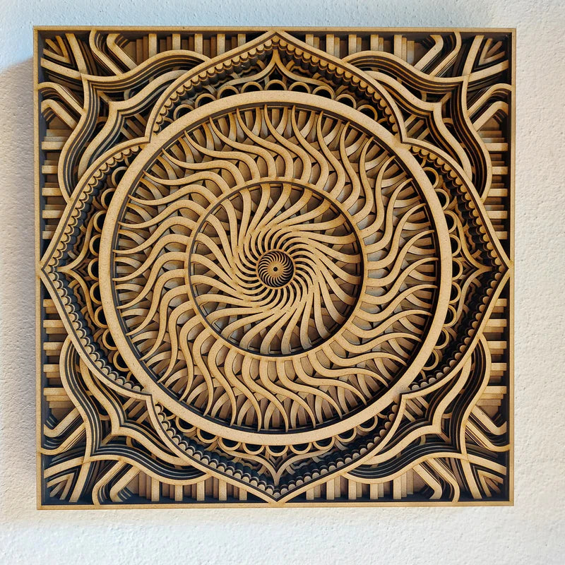 Hang de Mandala eenvoudig in uw woonkamer, slaapkamer of kantoor. Geniet van de diepte en de complexiteit van alle vormen, deze zorgen voor Ontspanning en Evenwicht. wij leveren deze gemonteerd en duurzaam verpakt. Het enige wat u hoeft te doen is het ophangen of neerzetten.