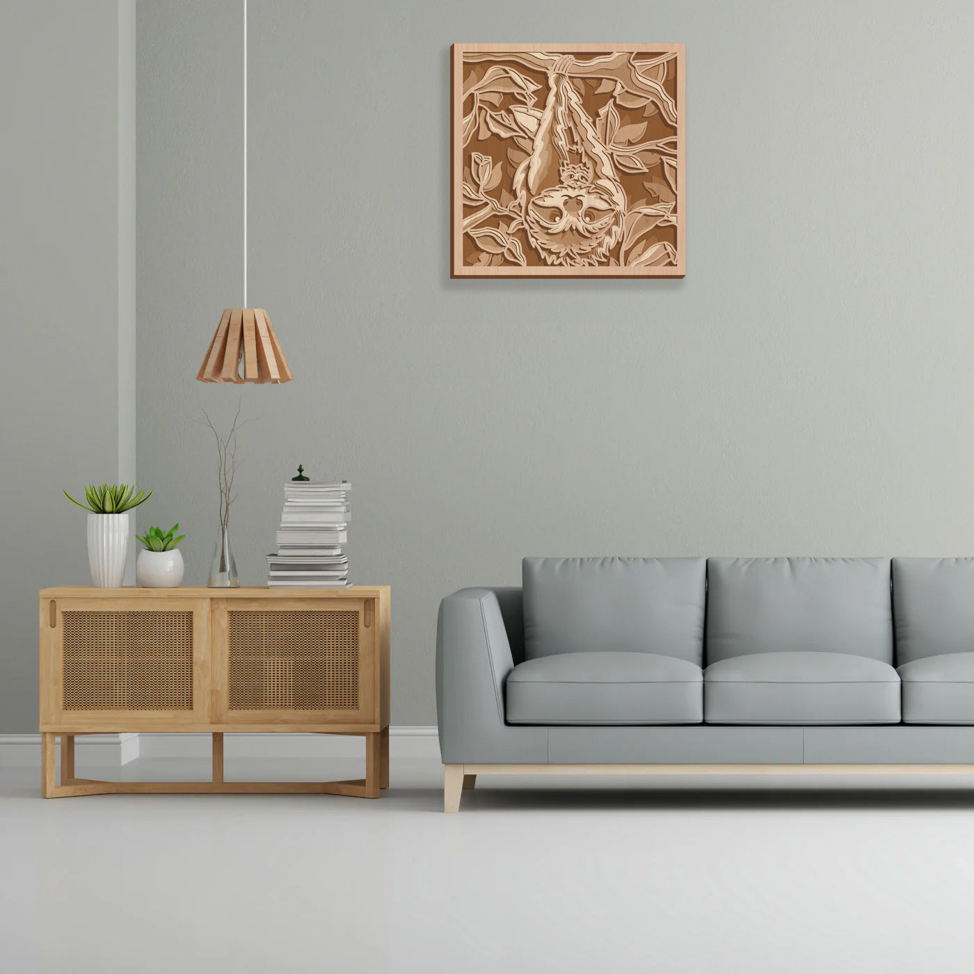Hang de luiaard Mandala eenvoudig in uw woonkamer, slaapkamer. Geniet van de diepte, en de complexiteit van alle vormen deze zorgen voor een Ontspanning en Evenwicht. wij leveren deze gemonteerd en duurzaam verpakt. Het enige wat u hoeft te doen is het ophangen of neerzetten.